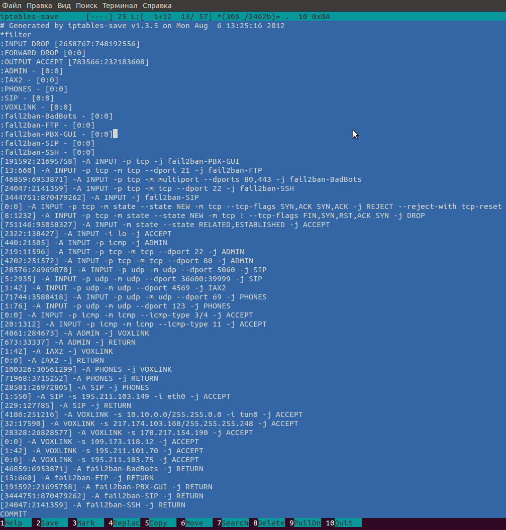 сохранить правила iptables